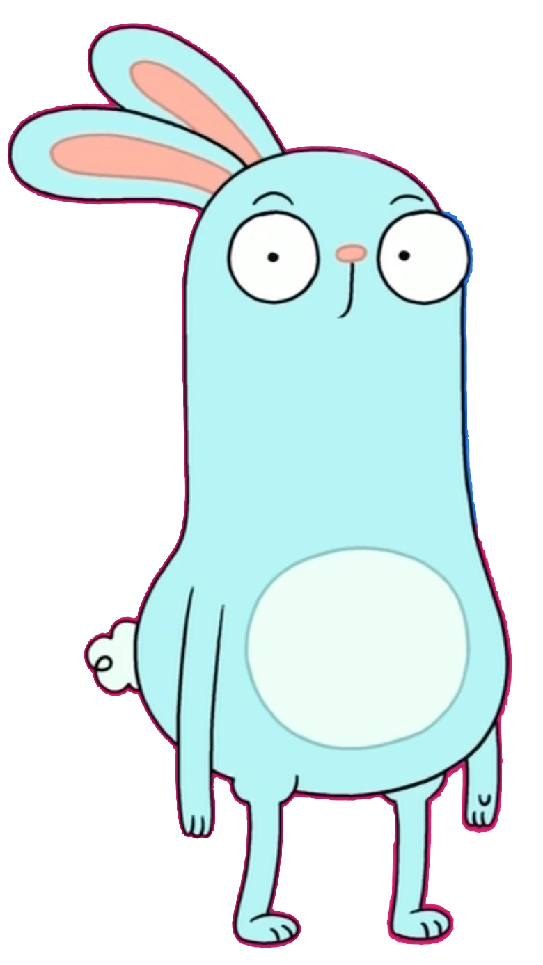 Barry es un conejo con pelaje azul claro y pelaje blanco en la barriga y la cola. Tiene ojos grandes y redondos con pupilas pequeñas, orejas largas, una nariz rosada de forma ovalada, dientes de conejo y una cola pequeña y esponjosa.