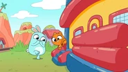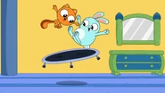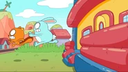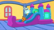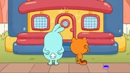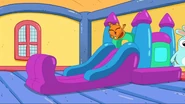 While walking down the street and playing with a hacky sack, Kiff and Barry pass by a life-size bounce house. Excited, they enter the house and jump around all of its rooms. However, the house turns out to be the residence of a family of balloon people, who come home to find Kiff and Barry inside. After being chased out of the house, Kiff and Barry notice a life-size gingerbread house next door and stare at it in amazement.