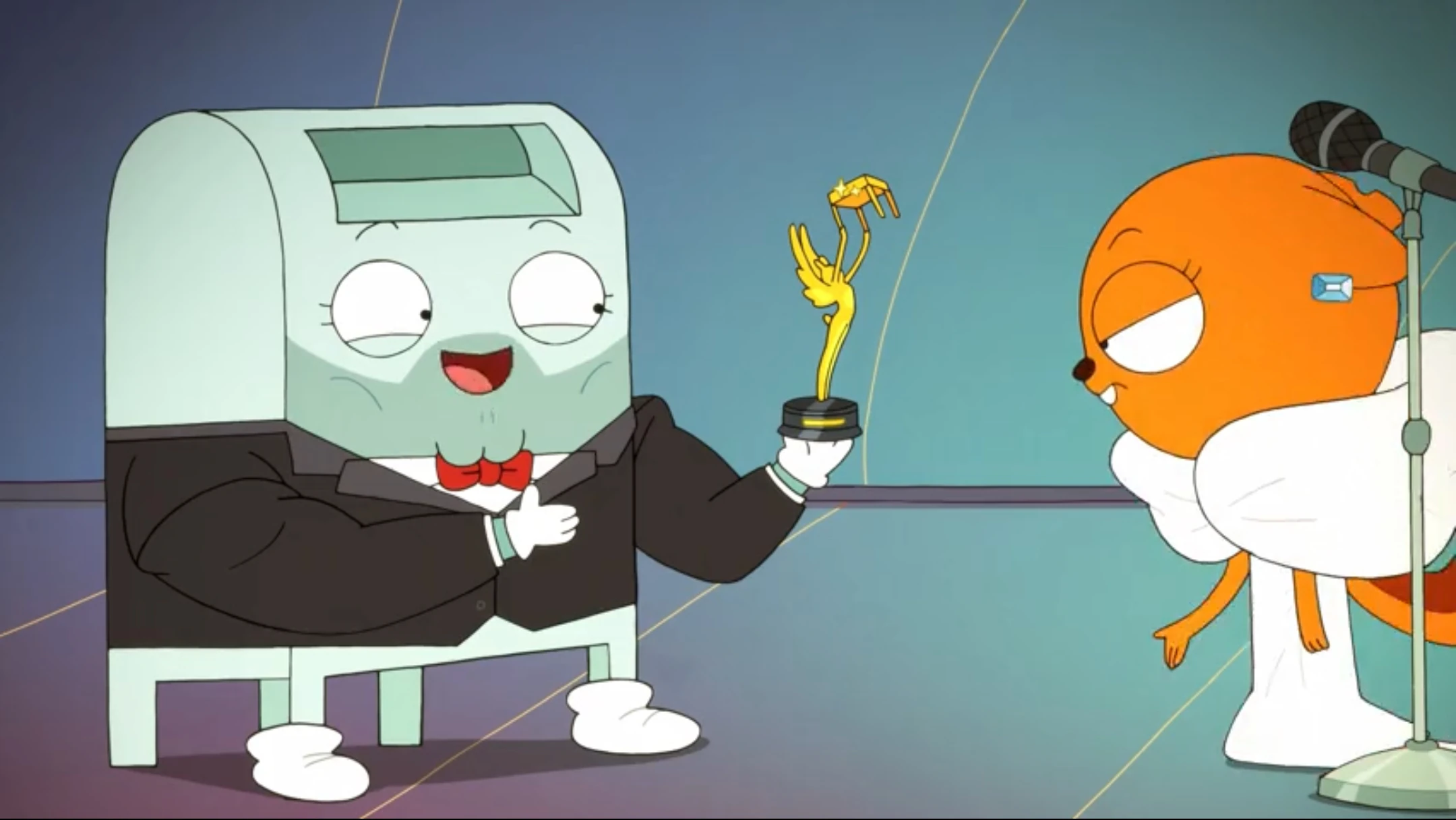 Chubbles handing Kiff her Best Director award for Found in Ambiguity.