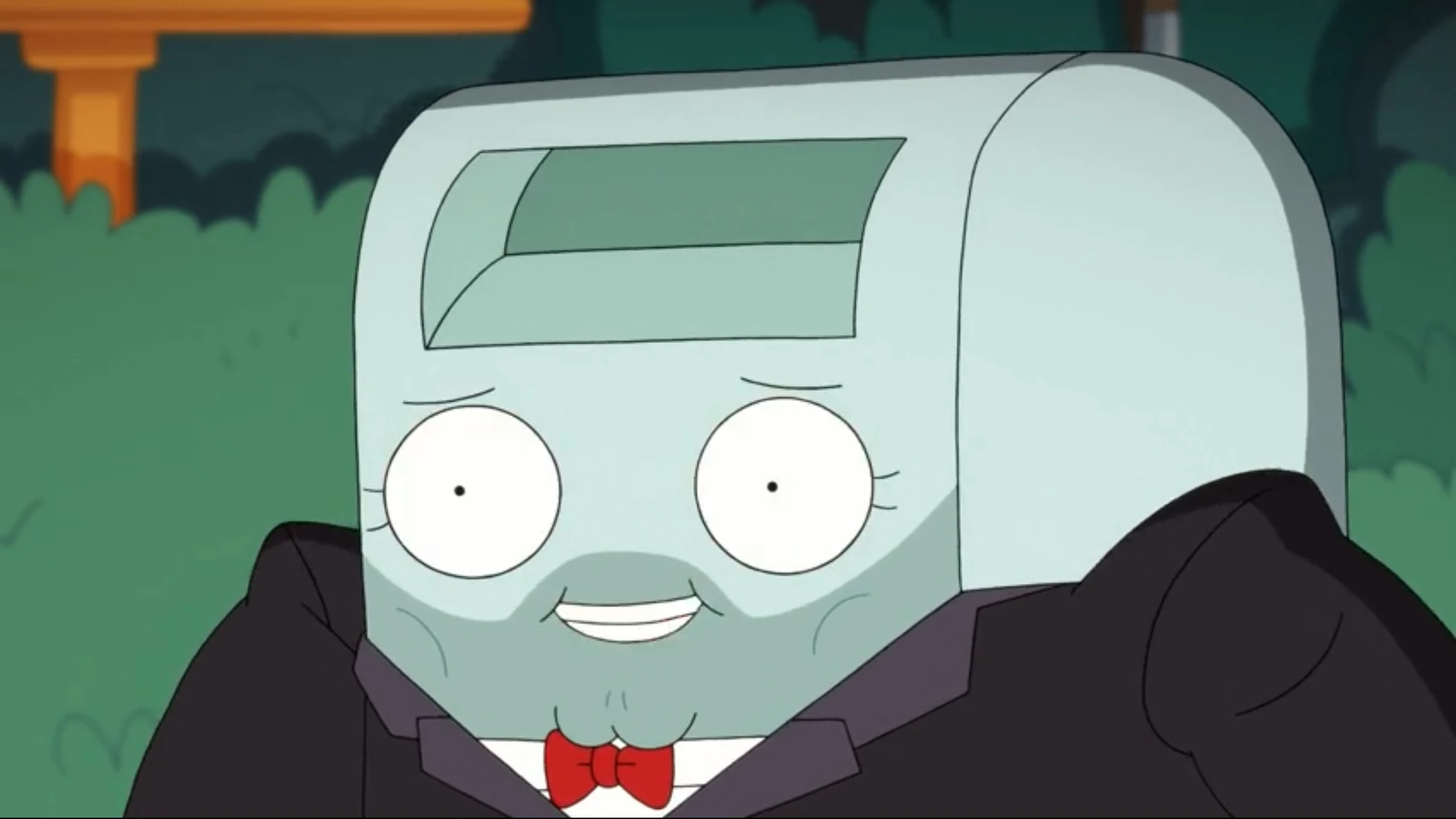 As a mailbox, Chubbles is one of the few characters in the series who is an anthropomorphic object as opposed to an organic creature. He has muscular arms and a five o'clock shadow, and typically wears a pair of white shoes on his two front legs.