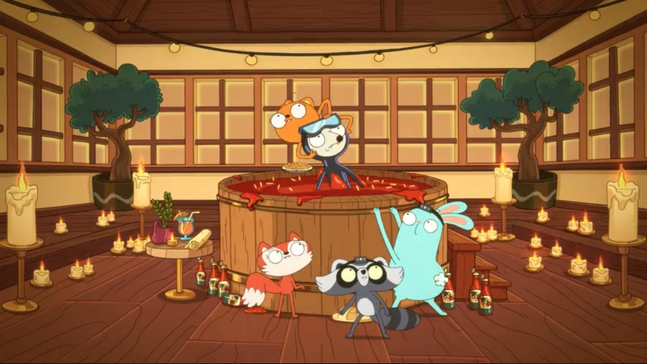 A wooden jacuzzi is installed in a room on the second floor. In "Snow More Ketchup", Roy fills the jacuzzi with his rare and expensive ketchup and hides there so that he can eat his french fries without having to share the ketchup.