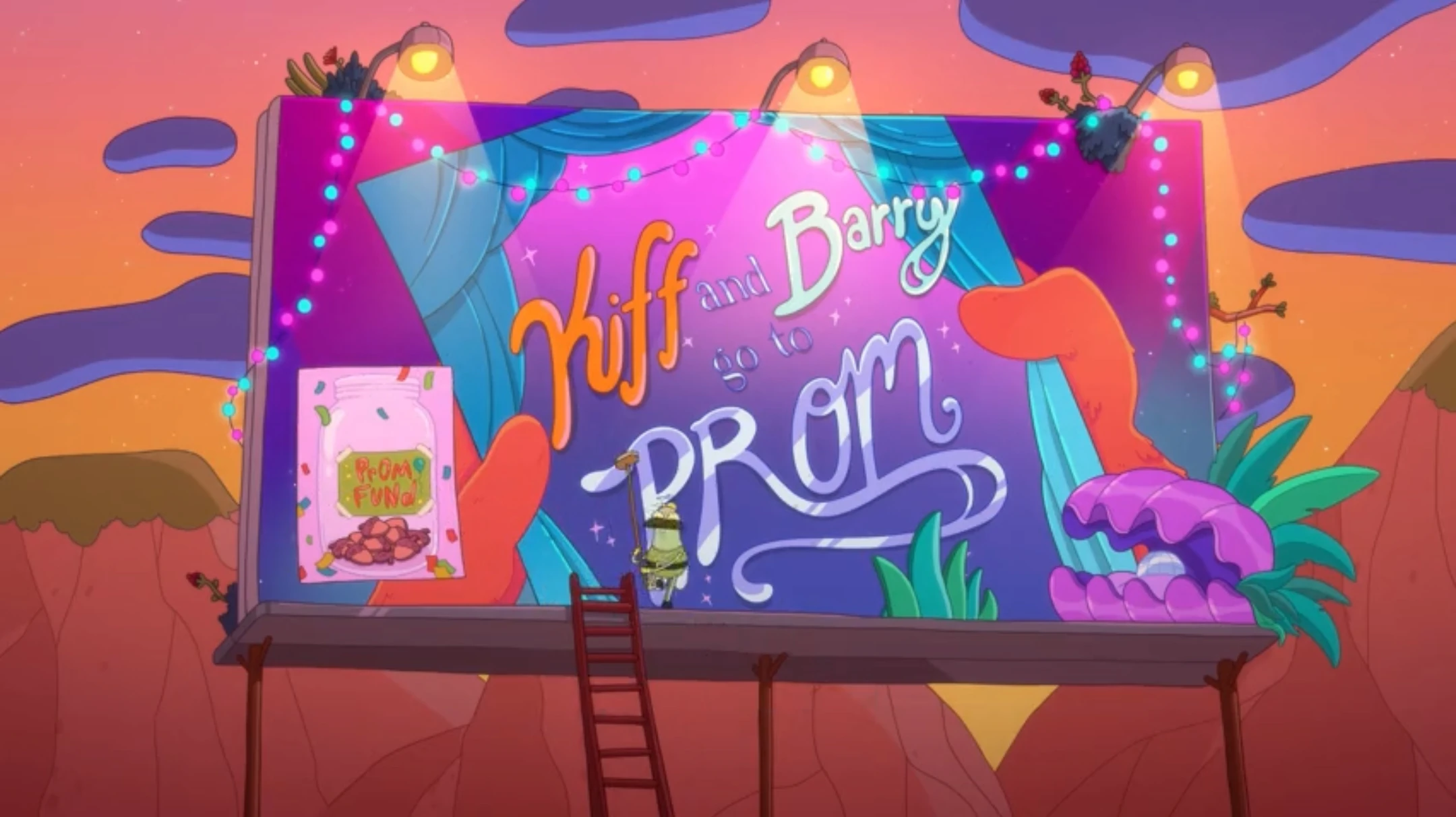 In the Table Town Middle School playground, Principal Secretary is collecting donations to help fund Table Town High School's upcoming "jungle clam"-themed prom. Trevor, Table Town Middle School's authority on high school gossip, rushes to the playground and reports to Kiff and Barry that Terri has asked Kyle Lyon to prom, as Kyle's girlfriend Michaela Oats apparently broke up with him via text while on a trip with her schoolmate Danny Wibbon to Danny's beach house. Complicating things further, Danny was afterwards spotted walking Vanilla Tigner to the bus stop. Trevor then receives a call and learns that Michaela has asked Ben Bamboo to prom instead of Danny. Wanting to learn more about the situation, Kiff, Barry, and Trevor decide to crash the prom.