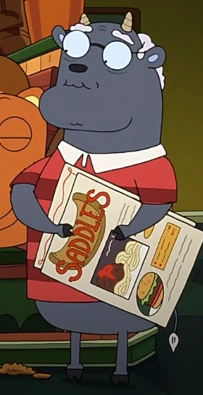 Pa Saddle is a restaurateur who co-owns Saddles, a Western-themed restaurant in Table Town, with his wife Ma Saddle.