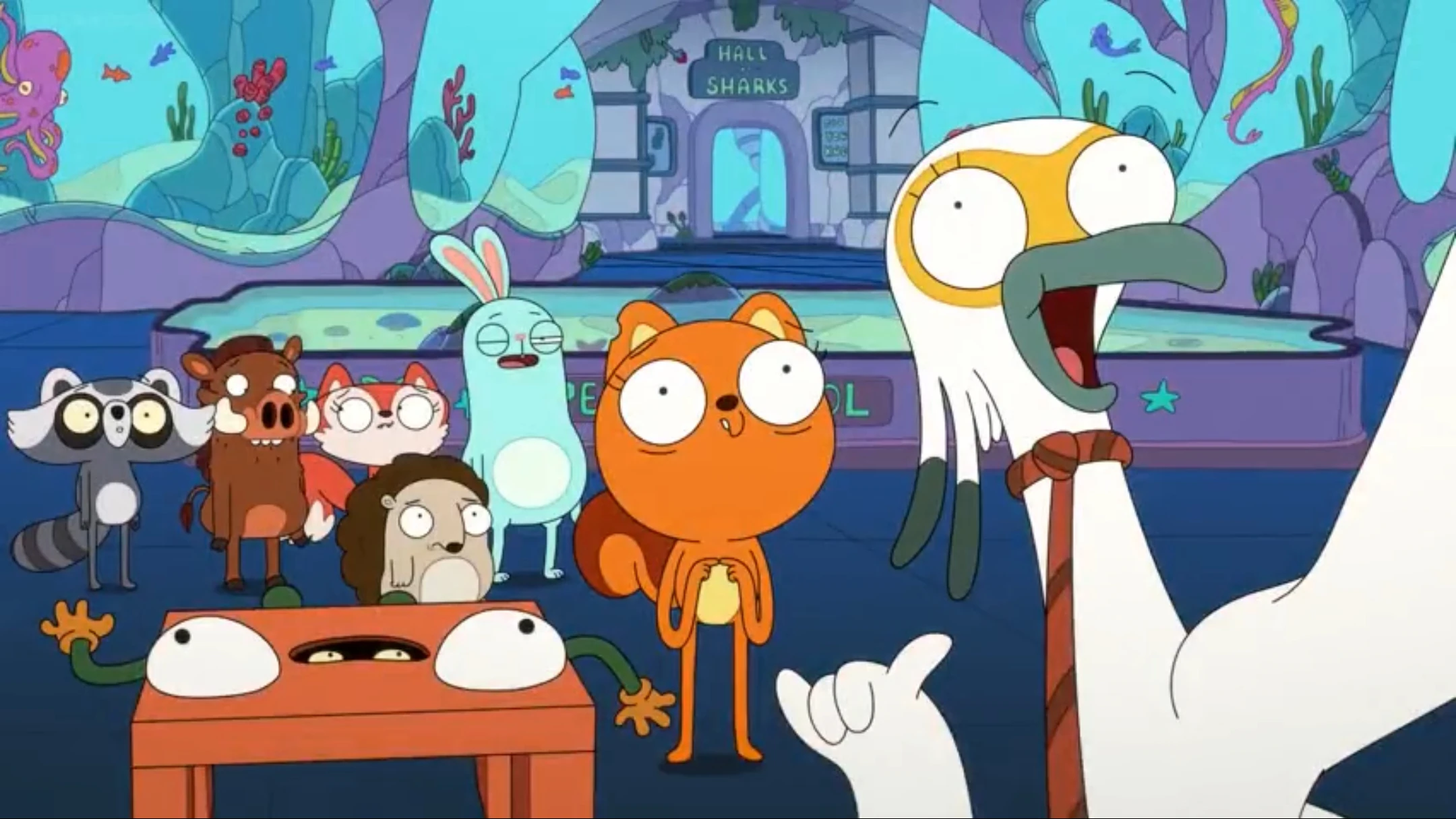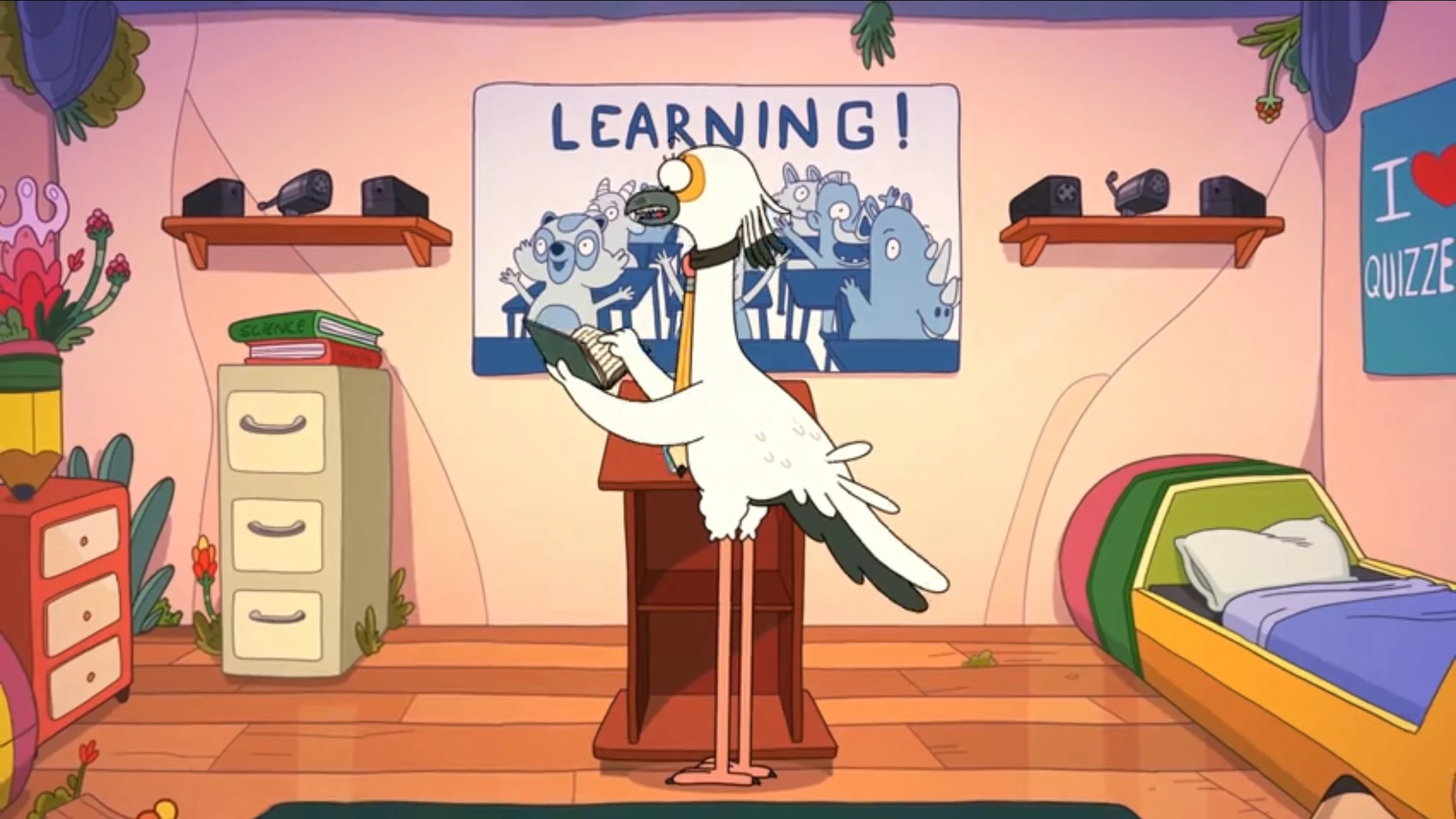 In "Faculty Lounge", Principal Secretary assists Miss Deer Teacher when her sandwich is stolen in the faculty lounge by forbidding anyone from leaving the lounge until the culprit confesses, and he later punishes the culprit himself, Mr. RiPeppa. In "Foreverangees", Principal Secretary and Miss Deer Teacher co-chaperone Table Town Middle School's field trip to the Foreverangees National Park.
