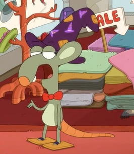 Rat is a belligerent and opportunistic businessman. In Rat's first appearance in "Hat", Barry's hat is blown by the wind into Rat's Hats and Mats, where Rat refuses to let Kiff retrieve it without paying. Kiff is forced to raise money to pay for the hat, only for Rat to instead sell it to another customer, Rockwell. When Harry briefly runs away from home in "Harry's Maturity Crisis" and finds himself needing a place to live, Rat hires him as a sales clerk at Rat's Hats and Mats and lets him stay in the store's back room, but pays him a meager salary and later reprimands him for refusing to assist a thinly-disguised Kiff and Barry, who are only shopping at the store to annoy Harry into quitting.
