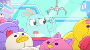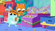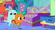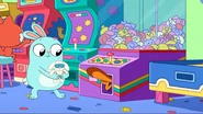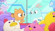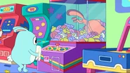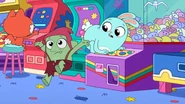At an arcade, Kiff and Barry play the claw machine. Barry wins a stuffed rabbit, but when Kiff takes her turn and tries to win a stuffed cat, something pulls the toy back down whenever Kiff manages to pick it up. Annoyed, Kiff goes inside the claw machine and finds a troll hoarding toys at the bottom of the machine. Kiff chases after the troll, but he grabs onto the machine's claw and rides it upward to escape the machine, leaving Kiff trapped inside.