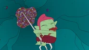 Barry plays the machine again and successfully pulls out Kiff, who takes the troll's hoarded toys with her. Kiff and Barry leave the arcade with all of the troll's toys, infuriating him.
