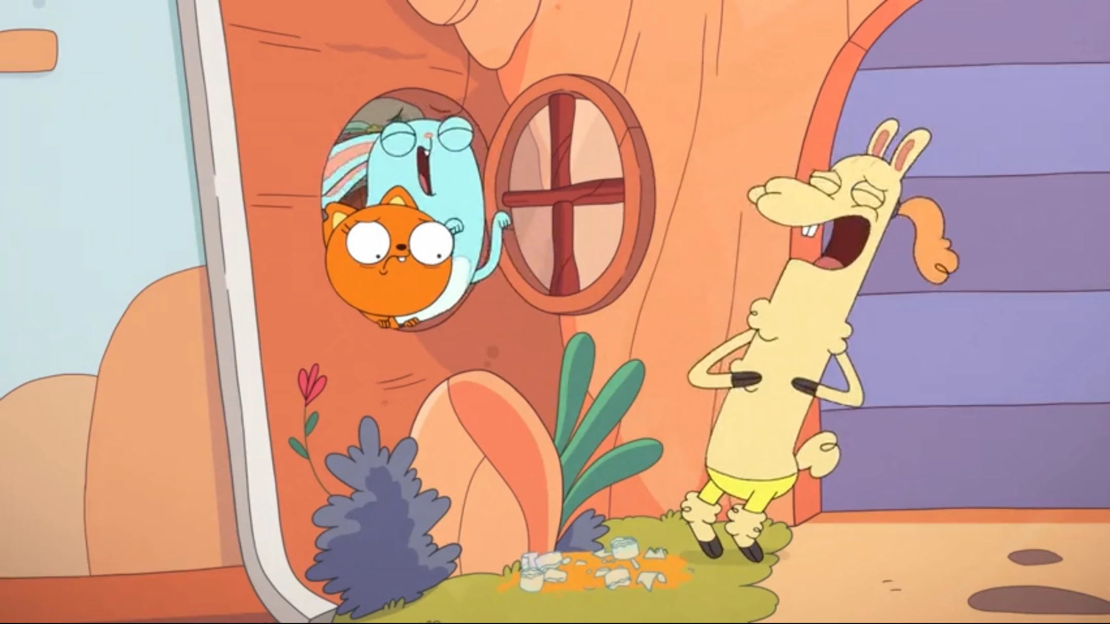 The Pone is an alpaca with cream fur and long orange hair which he keeps tied in a ponytail, hence his name. He is typically seen wearing yellow shorts.